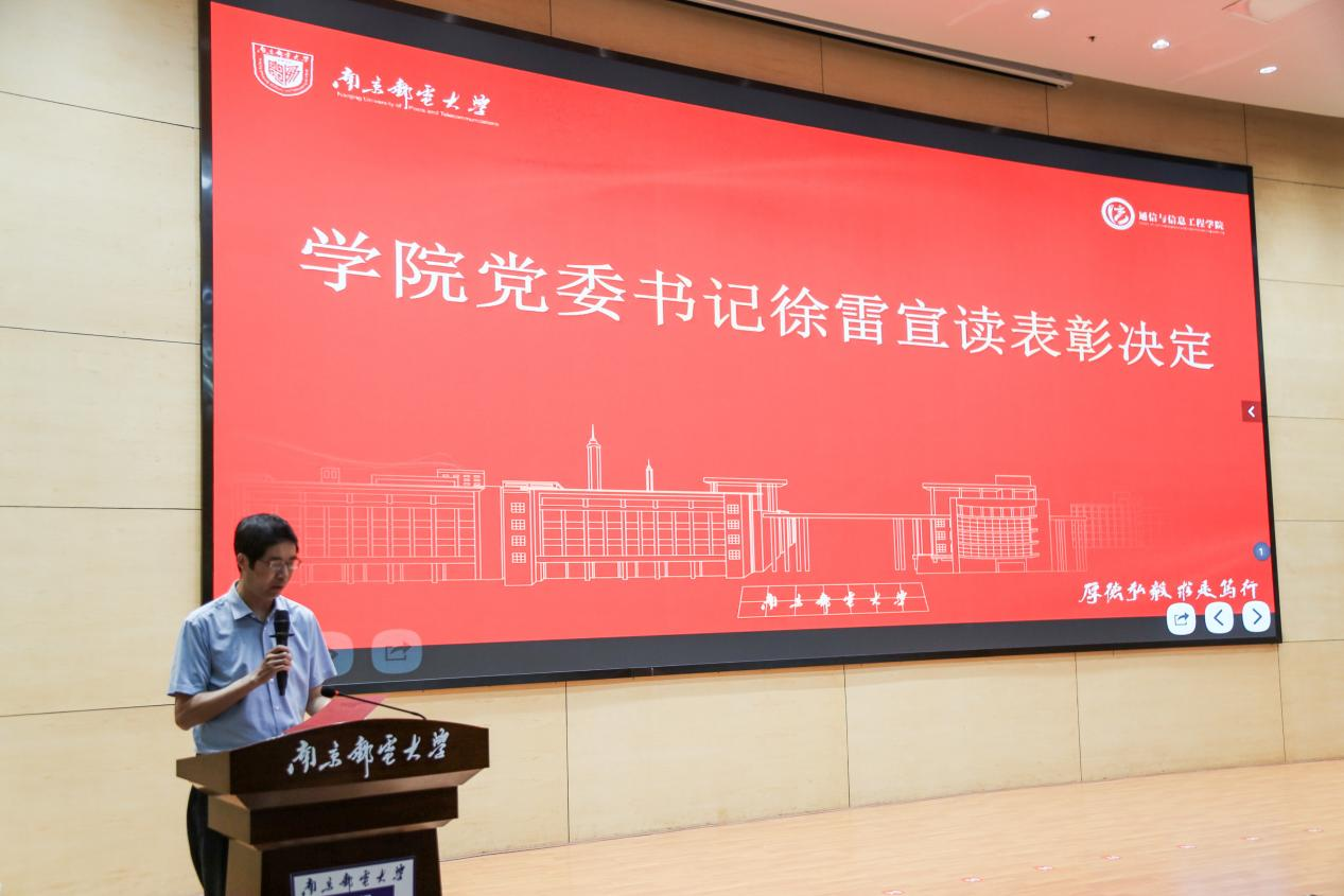 进入大会下篇“见贤思齐,踵事增华 —— 学生表彰大会”,南京邮电大学通信与信息工程学院党委书记徐雷宣读表彰决定,众多在学术科研、社会实践等领域表现优异的学生取得表彰。